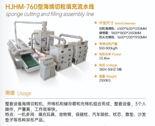 海綿切粒機,產量高,工作效率快。將海綿邊角落進行粉碎切稱粒裝,切粒后尺寸0.8-2CM,用于填充枕芯、寵物墊、坐墊等產品