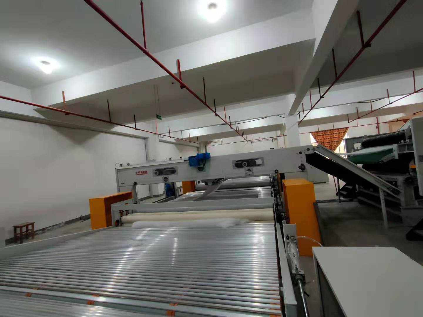 交叉鋪網(wǎng)機(jī)將梳理后的纖維多層疊加,調(diào)節(jié)克重和蓬松度。